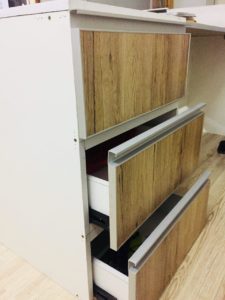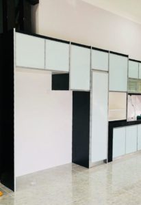 Kabinet dapur haruslah dilengkapi dengan aksesori dapur seperti drawer, tray sudu, rak pinggan atas, rak pinggan bawah, rak botol, dan tall unit untuk mendapatkan dapur yang sempurna dan teratur.